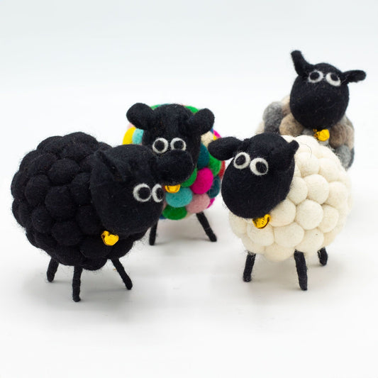 Handcrafted Felt Sheep Figurine – Multi Greys