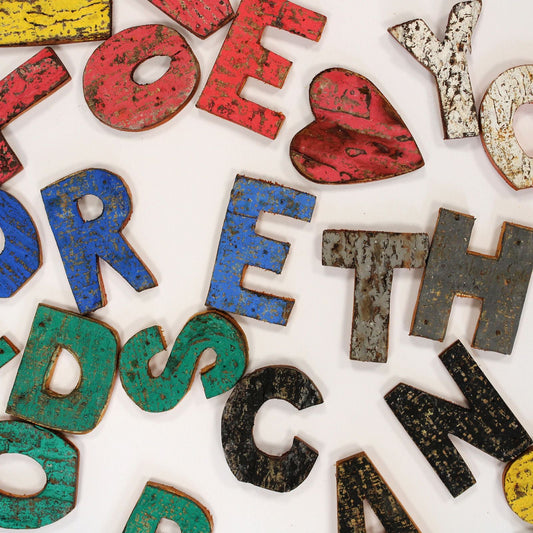 Albasia Wood Rustic Bark Letters – HOME 4-Set