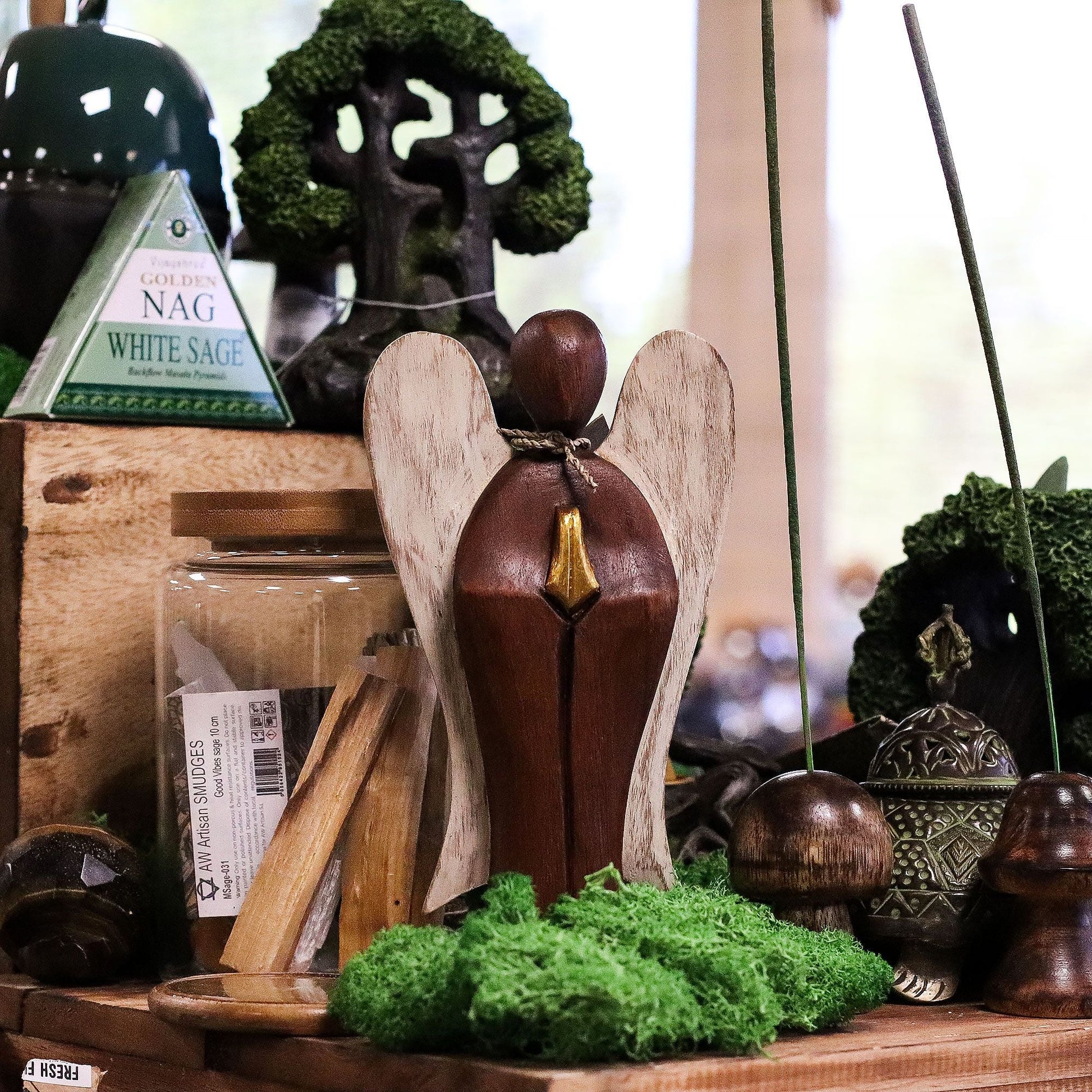 Abraza la calidez y el espíritu del amor con nuestro Ángel Hati-Hati de madera de Suar. Esta pieza, elaborada con cariño, aporta paz y serenidad a tu hogar, como un suave recordatorio del cuidado y la compasión que existen en el mundo.