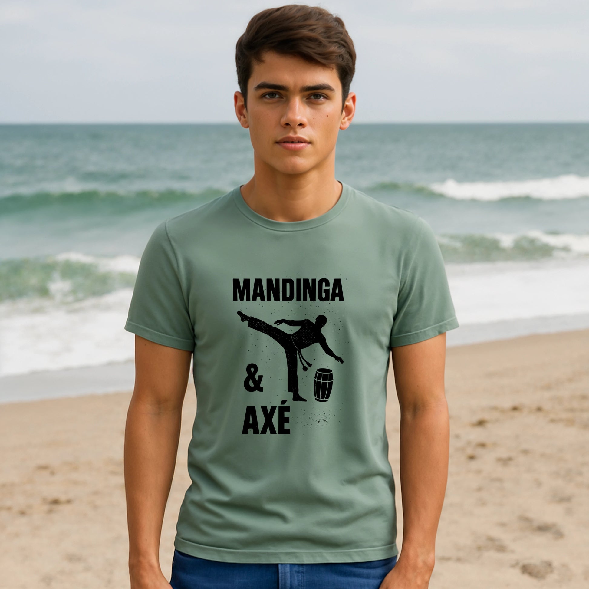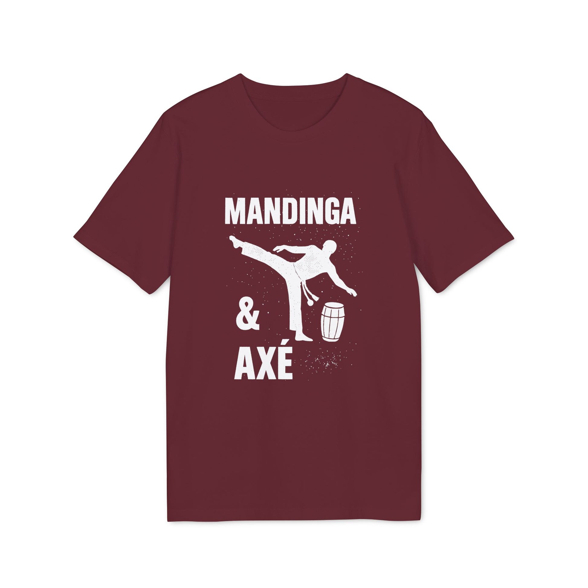 Channel the playful cunning of Mandinga and the uplifting energy of Axé with this distinctive Capoeira T-shirt. Featuring a bold 'Mandinga y Axe' graphic inspired by the rhythmic art of capoeira, this unisex tee invites you to express your love for Afro‑Brazilian culture wherever you go. Crafted from 100% organic cotton, it provides all‑day comfort, breathability, and an eco‑conscious footprint, making it ideal for dancers, martial artists, and anyone who appreciates sustainable streetwear. Wear it to training sessions, cultural festivals, or casual outings and let your passion for capoeira’s spirit shine through.