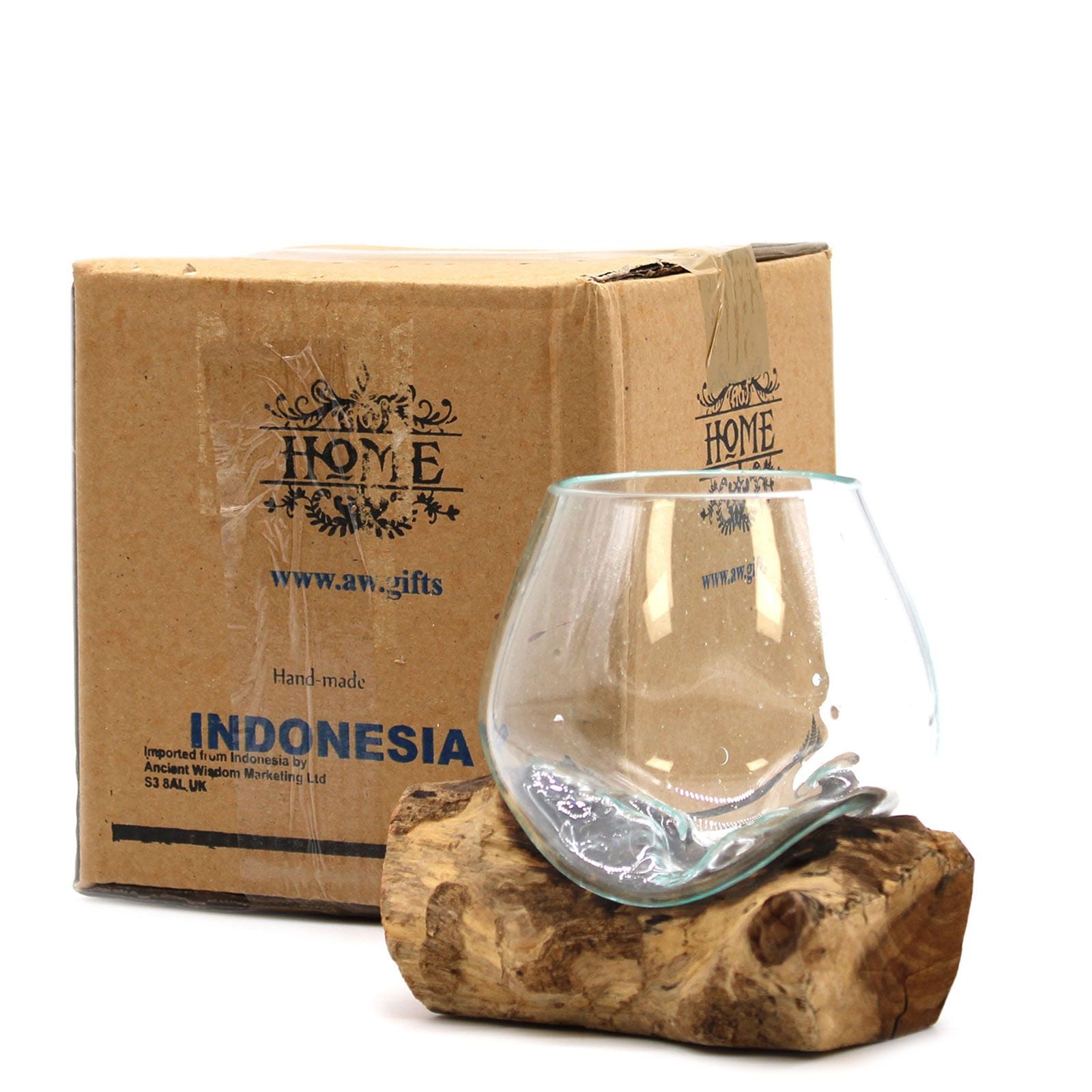 Product information: Material: Hand-blown molten glass fused to reclaimed wood, Size: Small, Origin: Artisan made, Indonesia